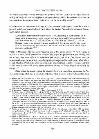 Early modern Castilian legal doctrine continues in the same vein. Against the short period of limitation for the remedies for defects on six months and one year respectively it places a remedy for lesion beyond moiety which lasts for four years.312 On account of this, one might assume that the principal remedy a Castilian buyer would choose in the event a defect in a thing bought had caused the required prejudice would be the one based on laesio enormis. Since that one lasted longer, it provided the buyer with the greatest chance to be on the safe side of the limitation's deadline. By the same token, early modern Castilian civil law extended the remedy for lesion beyond moiety to lease without any qualms but barred the remedies for latent defects from the same contract.313