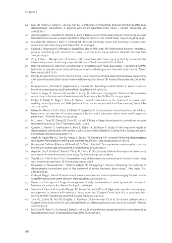 36. Gouello G, Hamel O, Asehnoune K, Bord E, Robert R, Buffenoir K. Study of the long-term results of decompressive craniectomy after severe traumatic brain injury based on a series of 60 consecutive cases. ScientificWorldJournal 2014;2014:1-10.