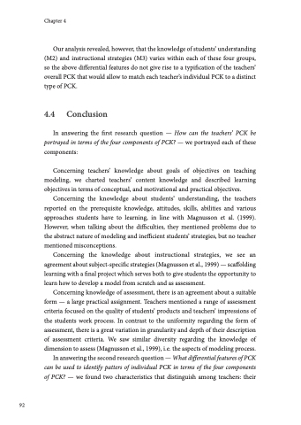 Our analysis revealed, however, that the knowledge of students’ understanding (M2) and instructional strategies (M3) varies within each of these four groups, so the above differential features do not give rise to a typification of the teachers’ overall PCK that would allow to match each teacher’s individual PCK to a distinct type of PCK.