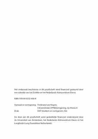 De druk van dit proefschrift werd gedeeltelijk financieel ondersteund door de Universiteit van Amsterdam, het Nederlands Astmacentrum Davos en het Longfonds (Lung Foundation Netherlands).