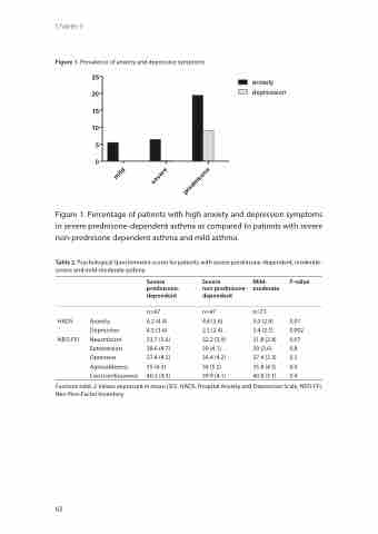 Figure 1. Percentage of patients with high anxiety and depression symptoms in severe prednisone-dependent asthma as compared to patients with severe non-prednisone dependent asthma and mild asthma.