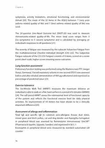 symptoms, activity limitations, emotional functioning, and environmental stimuli [20]. The mean of the 32 items in the AQLQ between 1 (very poor asthma related quality of life) and 7 (best asthma related quality of life) was used.