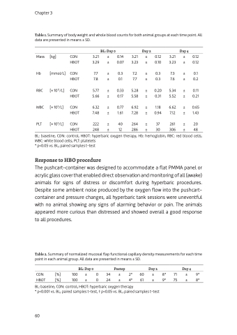 Table 2. Summary of normalized mucosal flap functional capillary density measurements for each time point in each animal group. All data are presented in means ± SD.