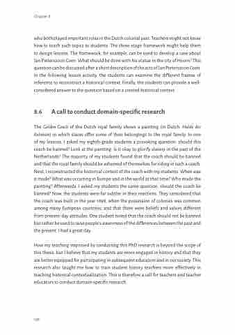 How my teaching improved by conducting this PhD research is beyond the scope of this thesis, but I believe that my students are more engaged in history and that they are better equipped for participating in subsequent education and in our society. This research also taught me how to train student history teachers more effectively in teaching historical contextualization. This is therefore a call for teachers and teacher educators to conduct domain-specific research.