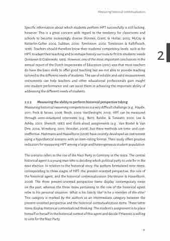 HPT, to adapt their teaching and to reshape history curricula to fit it to students’ needs (Jonassen & Grabowski, 1993). However, one of the most important conclusions in the annual report of the Dutch Inspectorate of Education (2012) was that most teachers do have the basic skills to offer good teaching but are not able to provide teaching tailored to the different needs of students. The use of reliable and valid measurement instruments can help teachers and other educational professionals gain insight into student performance and can assist them in achieving the important ability of addressing the different needs of students.