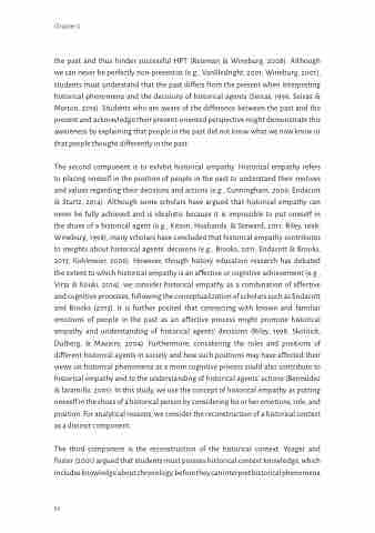 the past and thus hinder successful HPT (Reisman & Wineburg, 2008). Although we can never be perfectly non-presentist (e.g., VanSledright, 2001; Wineburg, 2001), students must understand that the past differs from the present when interpreting historical phenomena and the decisions of historical agents (Seixas, 1996; Seixas & Morton, 2013). Students who are aware of the difference between the past and the present and acknowledge their present-oriented perspective might demonstrate this awareness by explaining that people in the past did not know what we now know or that people thought differently in the past.