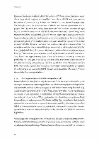 Research has indicated that not only domain-specific knowledge, understanding, and strategiesareimportantforsolvingproblems,butalsothatmoregenerictaskapproaches are important, such as carefully analyzing a problem and evaluating decisions (e.g., Alexander, 2003; Bransford, Brown, & Cocking, 2000). Only a few studies have focused on the use of task approaches in combination with contextualizing historical sources and historical agents’ actions. When investigating how students contextualize and date historical images and documents, Van Boxtel and Van Drie (2012) found that students who rushed to a conclusion or ignored information regarding the source more often failed to contextualize the source compared with students who approached the task systematically and used many clues provided by the source to generate alternative hypotheses.