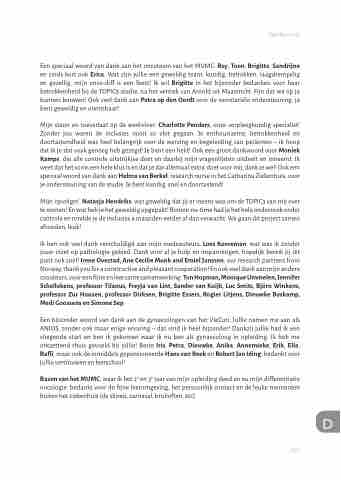 Mijn steun en toeverlaat op de werkvloer: Charlotte Penders, onze verpleegkundig specialist! Zonder jou waren de inclusies nooit zo vlot gegaan. Je enthousiasme, betrokkenheid en doortastendheid was heel belangrijk voor de werving en begeleiding van patiënten – ik hoop dat ik je dat vaak genoeg heb gezegd! Je bent een held! Ook een groot dankwoord voor Moniek Kamps, die alle controle uitstrijkjes doet en daarbij mijn vragenlijsten uitdeelt en inneemt. Ik weet dat het soms een hele klus is en dat je dat allemaal ‘extra’ doet voor mij, dank je wel! Ook een speciaal woord van dank aan Helma van Berkel, research nurse in het Catharina Ziekenhuis, voor je ondersteuning van de studie. Je bent kundig, snel en doortastend!