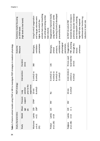 Table 1. Preterm animal models using CPAP or MV to investigate PEEP strategies in newborn physiology