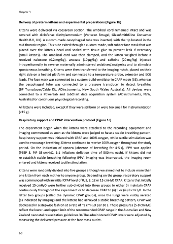 Delivery of preterm kittens and experimental preparations (Figure 1b)