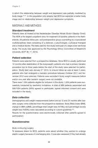 Patients were all treated at the Nederlandse Obesitas Kliniek (Dutch Obesity Clinic). The NOK is the largest outpatient clinic for treatment of bariatric patients in the Neth- erlands. All patients follow pre- and postoperative group counselling by a specialized multidisciplinary team consisting of a dietician, a psychologist, a physical therapist and a medical doctor. The data used for this study were part of a large cross-sectional study. The study was approved by the Psychology Ethics Committee of Maastricht University (ECP 06_11_2014).