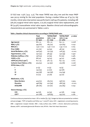 Table 1. Baseline clinical characteristics according to TAPSE/PASP ratio.