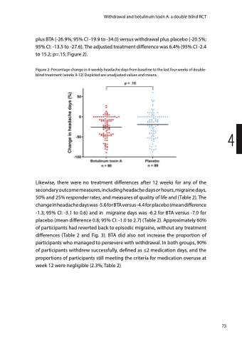 Figure 2: Percentage change in 4-weekly headache days from baseline to the last four weeks of double- blind treatment (weeks 9-12) Depicted are unadjusted values and means.