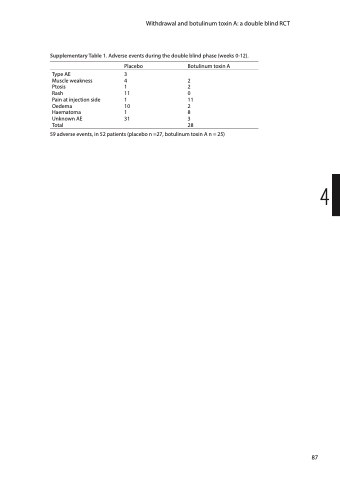 59 adverse events, in 52 patients (placebo n =27, botulinum toxin A n = 25)