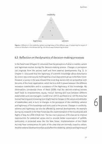of stakeholders and, in turn, to changes in the perception of the credibility, salience and legitimacy of the knowledge and tools used in the process. Changes in credibility, salience and legitimacy can also be affected by external developments. An example during my research in the New Forest was the implementation of the Countryside and Rights of Way Act 2000 (CRoW Act). The two main purposes of this law are to improve opportunities for pedestrian access and to provide better conservation of wildlife, particularly in protected areas like the New Forest. Implementation of the CRoW Act may have consequences for parts of the areas that are normally closed to visitors. Another external development that could affect the credibility, salience and legitimacy of