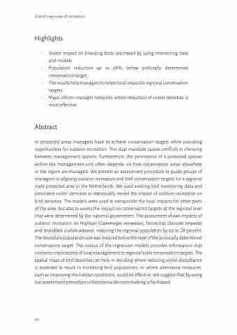 • Visitor impact on breeding birds estimated by using monitoring data and models.
