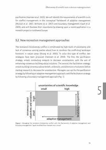 pacification (Hanssen et al. 2009). We will identify the requirements of scientific tools for conflict management in the conceptual framework of adaptive management (McCool et al. 2007, Williams et al. 2007) and boundary management (Cash et al. 2003), and will illustrate their importance by drawing upon a recent application in a research project in northwest Europe.