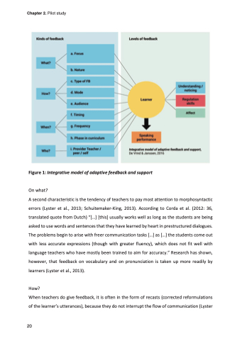 A second characteristic is the tendency of teachers to pay most attention to morphosyntactic errors (Lyster et al., 2013; Schuitemaker-King, 2013). According to Corda et al. (2012: 36, translated quote from Dutch) “[...] [this] usually works well as long as the students are being asked to use words and sentences that they have learned by heart in prestructured dialogues. The problems begin to arise with freer communication tasks [...] as [...] the students come out with less accurate expressions (though with greater fluency), which does not fit well with language teachers who have mostly been trained to aim for accuracy.” Research has shown, however, that feedback on vocabulary and on pronunciation is taken up more readily by learners (Lyster et al., 2013).