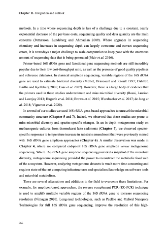In several of our studies we used 16S rRNA gene-based approaches to unravel the microbial community structure (Chapter 5 and 7). Indeed, we observed that these studies are prone to miss microbial diversity and species-specific changes. In an in-depth metagenome study on methanogenic cultures from thermokarst lake sediments (Chapter 7), we observed species- specific responses to temperature increase in substrate amendment that were previously missed with 16S rRNA gene amplicon approaches (Chapter 6). A similar observation was made in Chapter 4, where we compared end-point 16S rRNA gene amplicon versus metagenome sequencing. Where 16S rRNA gene amplicon sequencing provided a snapshot of the microbial diversity, metagenome sequencing provided the power to reconstruct the metabolic food web of the ecosystem. However, analyzing metagenome datasets is much more time consuming and requires state-of-the-art computing infrastructures and specialized knowledge on software tools and microbial metabolism.