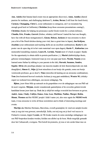 Ana, Aniela (that banana hand cream was an appropriate discovery), Anna, Annika (shared passion for methane, and challenging databases?), Arslan, Boran (I still hear the lunch horn), Carmen, Changqing, Chris L. (your enthusiasm is contagious, ain’t no mountain big enough good luck in California), Christian (keep those awesome presentations coming!), Christina (thanks for helping me pronounce useful Greek words for a certain defense), Claudia, Eric, Frauke, Garrett (frisbee, whiskey (still haven’t tasted the best one though), have fun with all those metagenomes!), Gizem, Heleen, Jackson (it was awesome to show you a bit of the Dutch kitchen during your visit, have a great time in Japan), Jan Keltjens, Joachim (your enthousiasm and teaching skills are an excellent combination), Karin S. (die poster van de open dag zit in het vaste materiaal voor open dagen), Karin V., Katharina (een memorabel mondeling examen), Laura H., Lavinia, Naomi (now it’s back on paper: thanks for the opportunity to obtain skills in protein purification ;) ), Muriel (dubbelzijdige thesis, geboren wetenschapper, benieuwd waar jij over een paar jaar bent), Nicolai, Nunzia (even learned some Italian by talking to your parents in the lab), Siavash, Suzanne, Sandra, Sepehr, Silvia (die prachtige plaatjes van insecten maakte de hele thuiswerkperiode een stuk draaglijker), Simon G., Stijn (jij bent misschien al een beetje die geniale, soms een beetje verstrooide professor, ga zo door!), Timo (microbes & hunting are an awesome combination), Tom (ben benieuwd hoeveel exotische Archaea je nog gaat ontdekken), Wouter M. (whisky- expert en werkend twee afdelingen, een mooie uitdaging), Yu.