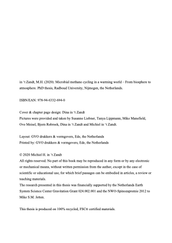 in ‘t Zandt, M.H. (2020). Microbial methane cycling in a warming world – From biosphere to atmosphere. PhD thesis, Radboud University, Nijmegen, the Netherlands.