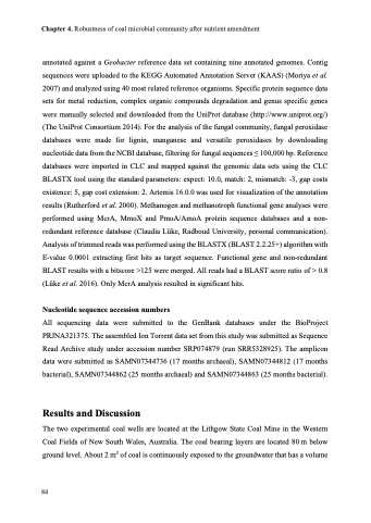 Chapter 4. Robustness of coal microbial community after nutrient amendment